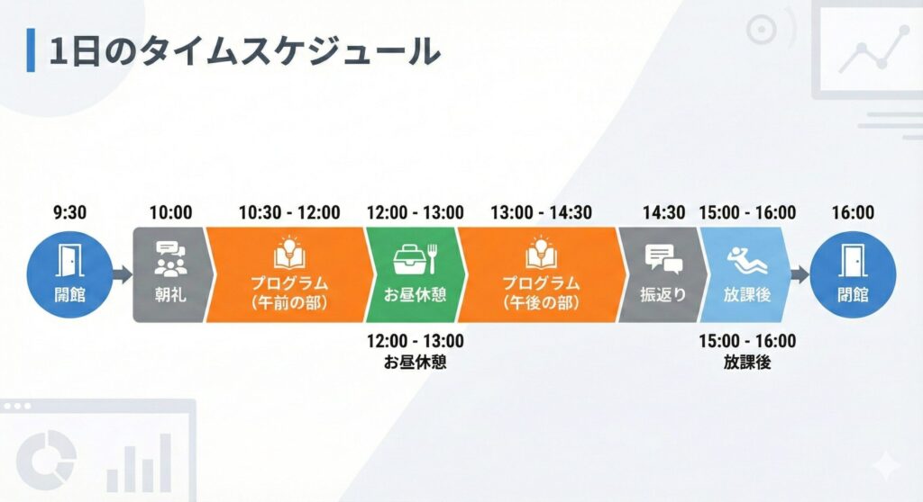 | 午後 (PM) | コミュニケーション | スキルアップ (SUP) | 個別支援等 | Social Lab. | HR | 個別支援等 |