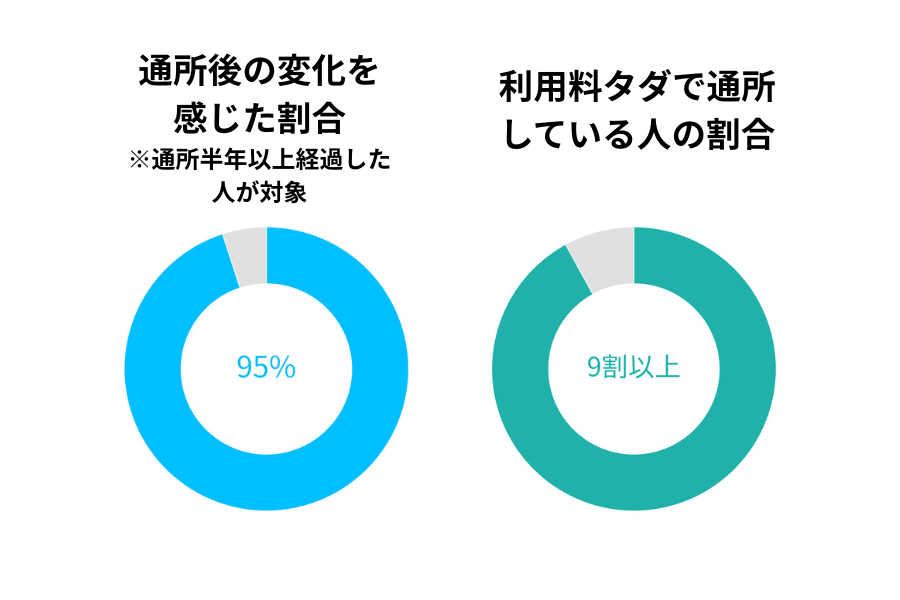 エンラボカレッジに半年以上通った約95%の利用者が「自分の変化を実感できた」と回答。